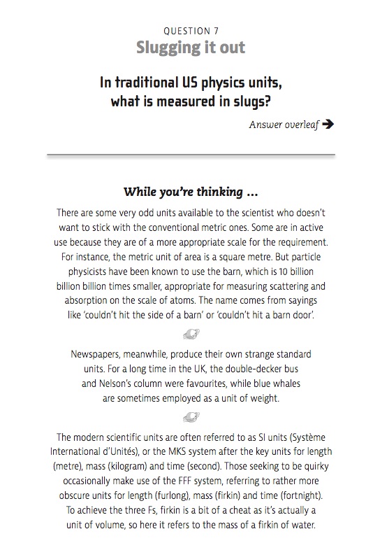 It was just as much fun to write - and I hope equally enjoyable to read. What's more it's a great stocking filler - on Amazon at the moment it's just £5.49.Although it's not how most will use it, there are two pub quiz style science quizzes in there, each with six standard rounds and two bonus rounds, which combine pictorial and puzzle solving work. However, it's written to make reading through it fun. Each of the 96 main questions has the question plus some supporting factoids on one page and the answer, plus a page of further reading on the next. So you can test yourself on each question - then find out more.
