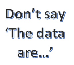 I am very fond of scientists, but I have to admit that their discipline tends to make them pedantic (I suspect even I can be occasionally) - which is fine when assessing science, but rubbish when thinking about use of English. Scientists should realise this. Suggesting language should have a fixed set of rules that always apply and never change is a bit like saying all species should be as they were 6,000 years ago and never change. Language is far more like biology than physics.The particular bit of scientific pedantry that gets my back up is the instance that the word 'data' should be treated as plural. So scientists will pedantically insist on writing 'the data support the hypothesis' rather than 'the data supports the hypothesis.' To every normal person, the scientists' version is clearly wrong. Because language evolves, and the way we use the word 'data' has evolved too.