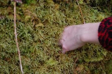 This is how thick the moss is. My fingers are just now brushing the rock this moss is covering.