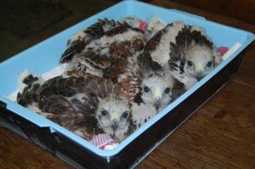 Finally, our hour was up, and we went back to the school, where there was one more bit of awesome for us to see. Baby Harris hawks! They had four of them that had just arrived to be raised, and we got to see and touch them. So ugly-cute, and with the biggest feet!