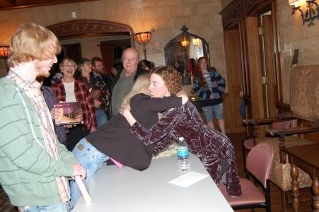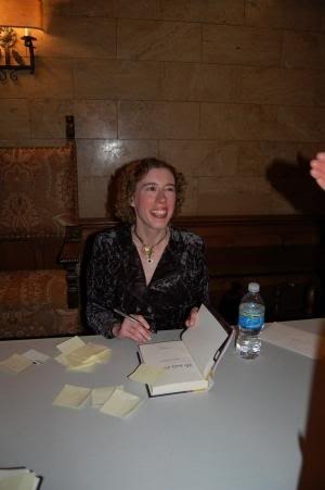 Was introduced by my coworker Diane Burton, who reads my drafts and is my proofreading goddess. Talked a little about some of the things in my life that led up to me becoming a writer, then read from the first chapter and took questions. Happily, people actually had some! (I hate that awkward feeling at Q&As when no one seems to have any questions.) Then signed books, which was a total thrill. The whole thing only took about two and a half hours, but I felt like it went by in minutes and, simultaneously, that I'd been up for about three days. Was exhausted and jazzed both when we got home, but so happy. The night was absolutely fabulous, and I was so glad and thankful for all the people who joined us.