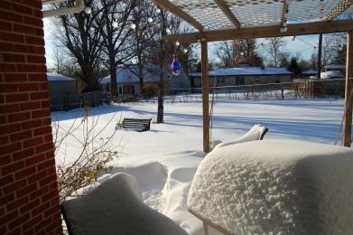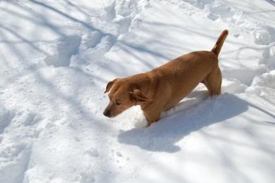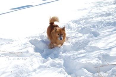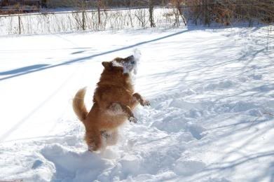 Played in the snow. As a kid, I would make snow animals (snowmen were just too ordinary) with Mom and my brother, Ian. No snow creatures now, but I did run around in the backyard with Nemo and Zuul. Once Nemo got over the snow being chest high to him, he had a great time catching snow balls. Zuul, however, was not amused, and only deigned to come into the yard twice and with great reluctance.