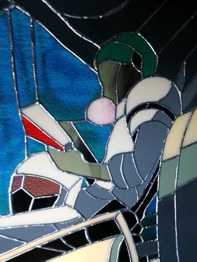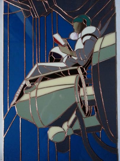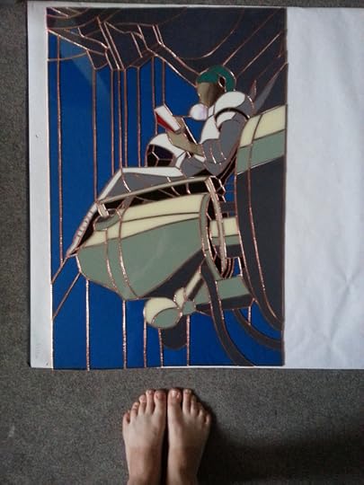 I still have to solder on the frame, and patina it black. My phone categorically refuses to render the actual colors of the glass, so that almost navy blue is actually a clear turquoise in real life. The bubble is made from the glass the brimples were made from ;) and I aligned the streaks of the mocha skin glass to the line of her cheekbone. That skin tone was the hardest to figure out! There are no “hazel” or “coffee” or “chocolate” or “amber” colors of glass, just weird orangy-brown and “peach”. Hurmf.