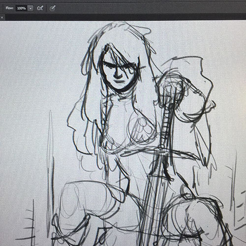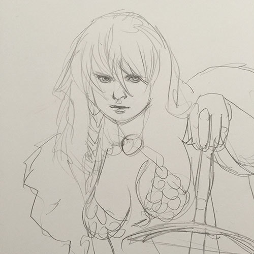 Step 2 - I print out the sketch and lightbox it onto the paper.