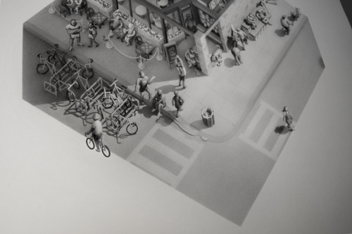 Step 3 - The pencils are erased after I loosely ink the piece. Starting out with the marker rendering.Step 4 - More rendering. I try to complete segments before moving on to other areas.Step 5 - With the background done and the textures added, the marker rendering is complete.Step 6 - I complete the inking process and add finalizing touches.Hope you enjoy. Further info can be found in my FAQ page.