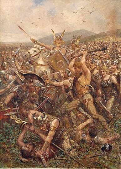 Around 30,000 German tribes men emerged from the forested and assaulted the Romans. The Battle would last 3 days with the Romans managing to build over night fortresses and march on. IN the end the path they followed brought them in front of another fortification - but this time built (at the suggestion of the Roman trained Arminius) across the Roman path. Assaults on this fortification failed and the Roman army broke up in dis-array with victorious Germans running amock amongst them.