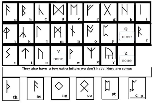 When the ancestors of the English came to Britain they spoke Old German which soon evolved into Old English . Little of their writings survives but what does was written in a Runic alphabet called the Futhorc after the first letters of their alphabet.