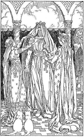 Frigga was the wife of Odin and Queen in Asgard. She was seen as the goddess of family and home and women. She is prayed to during child birth.
