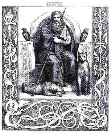 Woden (Called Odin by the Vikings and Woden in England) is the chief of the gods. He is a god of wisdom and thought and fate but also a war god. He appears as old man with a long beard. Has only one eye so wears a patch. He gave away one eye in order to receive the gift of wisdom.