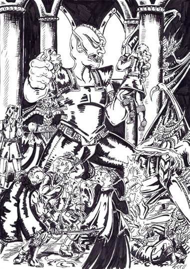 Here another fantastic sketch by Gill Pearce of Hellion's Art brings to life a dramatic fight in The Last Seal.