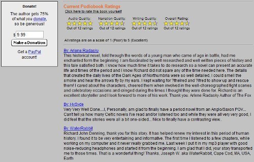 Podiobooks are also supplying some audiobooks to iTunes and a few other sites so there is potential for income. BUT it is best to see this as marketing and not worry about income.