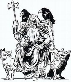 Woden is the chief god of the Anglo-Norse Pantheon. He is seen as being often a grumpy old man, or a warrior and sometimes a shadowy cloaked figure sneaking around watching men. He was a god of life and death, of of war. In Saxon and in Norse mythology, Woden/Odin was the highest ranking god and the leader of the Wild Hunt. He was often imagined galloping across the sky in a chariot pulled by white horses. It is thought that he is the original inspiration for Santa Claus. There are a number of symbols associated with him. Both the Raven and the Wolf are animals linked to Woden. He is often depicted with a spear.