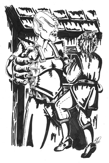 Character sketch from The Last Seal. Sketch is by Gill Pearce of Hellion's Art