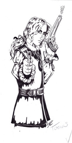 Character sketch from The Last Seal. Sketch is by Gill Pearce of Hellion's Art