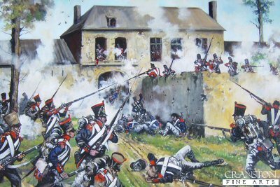 Wellington was a genius at the defensive battle and had seen that this location was perfect. The ridge itself would hide his men and forward of the slope there were three strongholds. On the his right wing the fortress of Hougoumont. Here he deployed some of his guards companies. Covered by woods to the south (in which he placed light infantry) the Chateaux had tall stone walls and thick gates. In the centre of the position was the fortified farmhouse of La Haye Sainte. To the left were several connected buildings at Papelotte and La Haye.