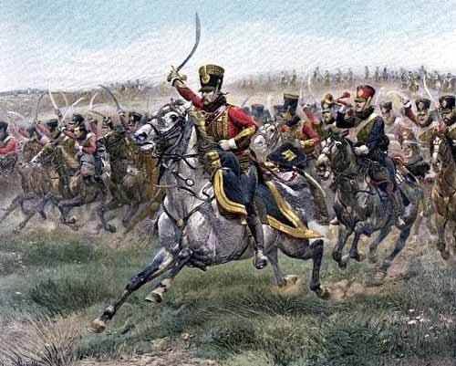 The charge by the French cavalry at Waterloo would have look terrifying and magnificent at the same time. Initially 5000 horses charged bt when they crested the ridge they found the British were NOT retreating but had formed square 0f the defence against cavalry. Scattered like a chess board these squares resisted no less than 12 French charges with as many at 9000 Cavalry at once. The British endured and held on.