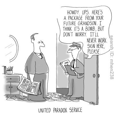 "Something very bad has happened here. This thing says the fire occurred twelve or so years ago and that your parents died in it. You are a paradox, my boy: you don't exist. You were never born!"