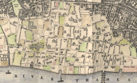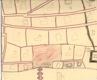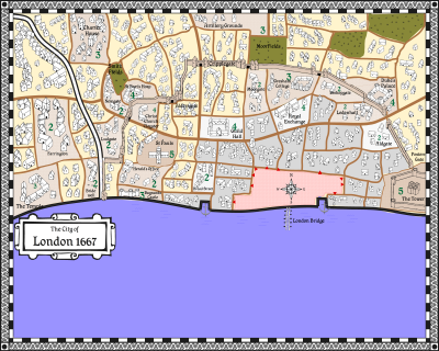 It was actually drawn in 1667 (the year after the fire) and showed the extent of the damage. Using this I sketched a very crude board on two pieces of A4 card.