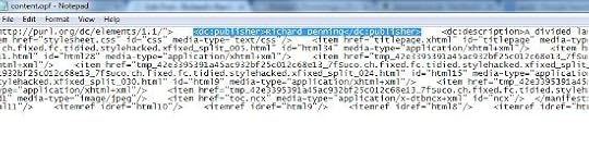 So you have created a book on Smashwords and the meatgrinder has generated the book in various formats. As author you can download the book. So go grab the ePub. Then unzip it. Find the Contents.opf file and open it in Notepad: