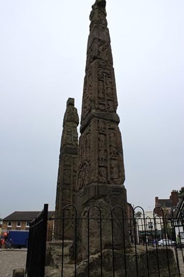 Today I was on the way to deliver a talk to Macclesfield Writers group on historical fiction and self publishing. I had a little time to kill so decided to visit Sandbach. There, in the middle of the cobbled market square of this old market town are two stone crosses of great antiquity. They are at least twelve hundred years old and I wanted to see them as they represent probably the finest as well as some of the earliest Saxon Christian symbols that still survive.