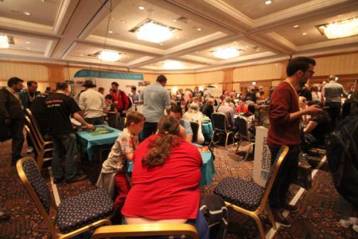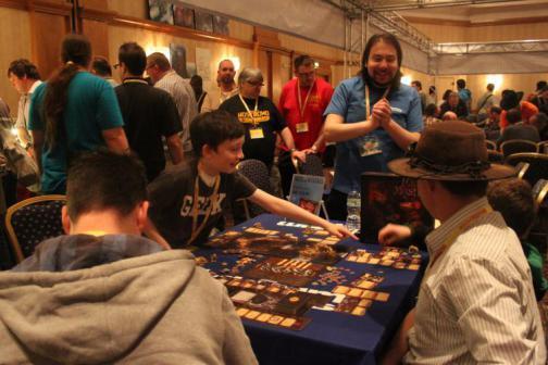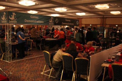 For the organisers this was the result of two years of planning. The journey began at Expo 2011 when Larry Roznai the C.O.O of Mayfair games made it across for the first time to Expo. He liked what we were doing but told us that the event could be bigger and better if we were willing to take the risk and move to a larger venue. Larry has vast knowledge and wisdom in such matters and his advice sent us to the Hilton. By co-incidence on the same day I emailed the Hilton they emailed me. They had heard of us and were looking to attract us to them. So we went and saw them. Now we did honestly warn them about the sheer scale of what we had in mind but I think – to be frank – they did not really believe us. They are used to trade Cons and fan based events but really the largest Hobby based event ( DR Who and Terry Pratchett events) have till now attracted just about 400 folk. THAT is what they thought they were getting. I think they are still in shock after we opened the door and pushed 3500 people at them.