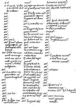 Probably started by King Alfred the Great who at least sponsored and encouraged it, this was a chronicle of events in England and surrounding lands recorded by monks. It focuses on the large events, battles, Kings and Lords and so forth and at first glance would seem to be just the thing. BUT there are limitations to its usefullness. The writers were living in a period over three hundred years after the events they recorded and so were relying on passed on word of mouth or old documents that no longer exist and we cannot validate. Moreover the Chronicle is south centric – focusing for the most part on the events in the southern kingdoms and little on those in Northumbria where my story is set. This is so much so that the chroniclers seems to just simplify matters by lumping the Royal Houses of Deira and Bernician (the two parts of Northumbria) into one. Fortunately other geneaologies do exisit for this period. The historic Battle of Catreath which did so much to shape the north is not even mention in the ASC. Then again it is not mentioned in many places.