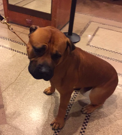 The awards ceremony was being held at the Hotel Pennsylvania where all the dogs were gathered for the Westminster Dog Show. There were so many dogs in the lobby! This big cutie was my favorite: