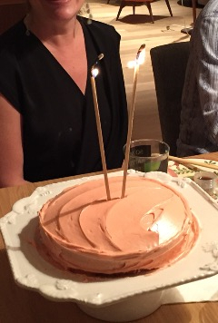 It was Pepto Bismal pink. I tried to think of a famous literary character that takes Pepto Bismal, but I couldn't think of any. Can you? (notice the long matchstick candles. Clever. Very clever.)