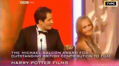 Here's a video of author J. K. Rowling, producers David Heyman and David Barron, directors Alfonso Cuaron, Mike Newell, and David Yates, and actors Rupert Grint and Emma Watson on stage at the BAFTAs to receive the "Outstanding British Contribution to Cinema" Award for the Harry Potter series.