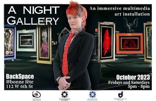 Or anyway, the”All Open-Mic Bloomington Writers Guild First Wednesday Spoken Word” session this evening at downtown Bloomington’s Backspace Gallery, perhaps in part due to its late-minute, cobbled-together nature drew only ten people, but of which eight were readers, which made for an appreciative if smallish crowd. And the smallness in turn meant that everyone had a chance to read twice which in my case, due to my having missed June’s regular session (a competing engagement) as well as the August non-session, and thus having two of my ongoing five-part “Casket Suite” tales of the plucky New Orleanian vampiresses, les filles à les caissettes a.k.a. “Casket Girls” still unread, I was able to read, first, a very-short part 4, “Shades of Difference” in which les filles discuss the color red and why it’s the vampiresses’ favorite color. And then in the “encore round.” the final fifth part, “What’s in a Name?” where Aimée laments that although she wishes to be loved by all, there are still some who insist on holding her being a vampire against her.