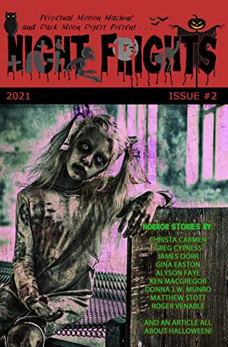 In the second issue of Night Frights magazine, we have stories by Christa Carmen, Greg Cypress, James Dorr, Gina Easton, Alyson Faye, Ken MacGregor, Donna J.W. Munro, Matthew Stott, and Roger Venable. Also includes a classic short story by Edgar Allan Poe and an article all about Halloween!