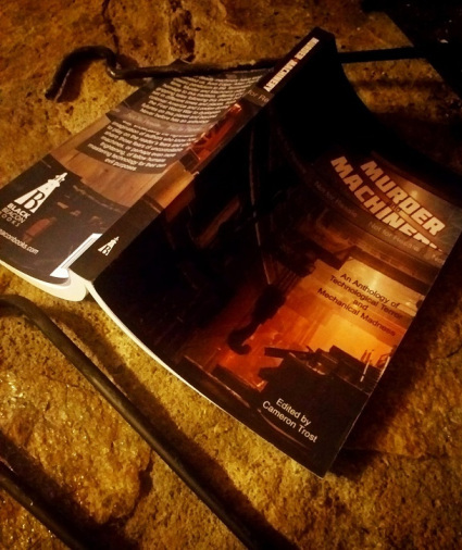 The full title for the anthology itself is MURDER AND MACHINERY: TALES OF TECHNOLOGICAL TERROR AND MECHANICAL MADNESS, from Black Beacon Books. And if that weren’t enough, yesterday afternoon’s announcement continues: The Kindle ebook should be available for pre-order within about 24-hours. $2.99 USD pre-order price ($3.99 after release) . . . feel free to spread the word once it’s up and try to get our readership to take advantage of the discount.