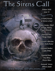 She’s been around, “Eudora” has. First published in Nightscape Press’s 2013 BLOOD TYPE: AN ANTHOLOGY OF VAMPIRE SF ON THE CUTTING EDGE, Saturday — a day after Christmas — brought the word from Editor Nina D’Arcangela (cf. November 1, et al.): We’ve just published the Winter 2020 edition of THE SIRENS CALL eZine (#52), and we’d like to thank you for making it such a great issue! The eZine is available for free on our website. Please feel free to share it with your friends, family, or on any of the social media outlets you frequent.