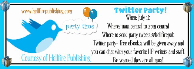 The Demon's DozenWhat is 'The Demon's Dozen' you ask? Well, pull up a seat and let me tell you! Hellfire Publishing would like to extend our fun & craziness to twelve (12) lucky fans/readers. We are looking for twelve people to commit to spreading the word about HP. All you have to do is post any upcoming events, contests, new releases on your Facebook page, Myspace, Blog, Twitter, etc. That's it! Pretty easy hey? In return for your help, you will be given the 'Member of the Demon's Dozen' official badge each month to post on your pages, as well as an honorable mention on our HP blogs. In addition to this, you will be rewarded with free eBooks published by HP. Because we understand busy schedules, you can pick your length of time in Hell(fire), LOL.