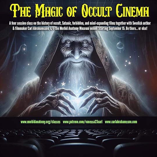 Join Swedish author and film-maker Carl Abrahamsson for a unique four-sessions class focusing on Occult Cinema. From films thematically dealing with the Occult and the Satanic to hidden away, macabre masterpieces to forgotten films made by sheer force of will, this inspiring class will be an enlightening, occasionally terrifying, and, most of all, fun way to broaden your horizons when it comes to both Occultism and its supreme magical tool: Cinema.