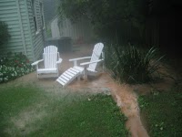 Old picture of the water iris at the bottom of the culvert after a rainstorm (we have since moved the chairs, obviously):