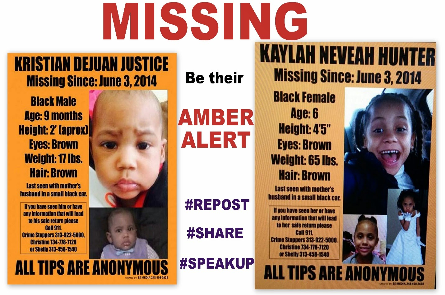 As the days continue to roll by, thousands of people share the missing children’s pictures online and pray for the family, hoping the children are found. We are heartbroken that the Detroit Police Department still will not issue the Amber Alert for Kaylah and Kristian. Why wouldn’t they enlist the help of the entire country in the search for these innocent children? Their mother was found murdered and their father is currently in custody for her murder. These children are most certainly in danger. They need to be with us. Anything could have happened to them.