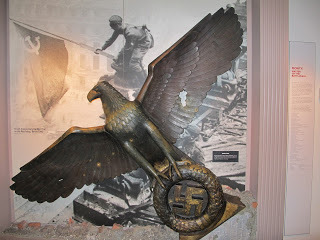 Today, I had a stroll through the WWI and WWII galleries, and while it was busy, I got some quality time (=unimpeded time to photograph) with this exhibit. This helps me with my WWII novel - and learn my camera. But mostly, I could stare at it and allow it to go deep, deep enough into my soul where my characters live. And, yep, that's a Third Reich bronze eagle - the holes are from bullets. Some people bring the weirdest souvenirs from war. I think they get bigger when you click on them.