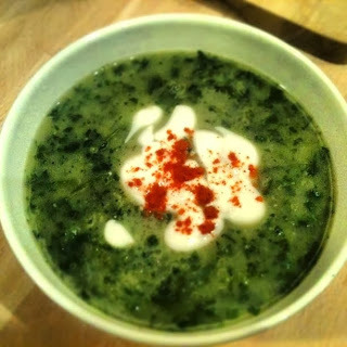 Chop the rest of the parsley and put in the pot and simmer for a minute, then blitz in a liquidiser or use one of those blender sticks, or just attack the soup with a potato masher. Season to taste with salt and pepper. It goes very well with a dollop of yoghurt and a generous dusting of cayenne pepper, if your stomach can handle it.