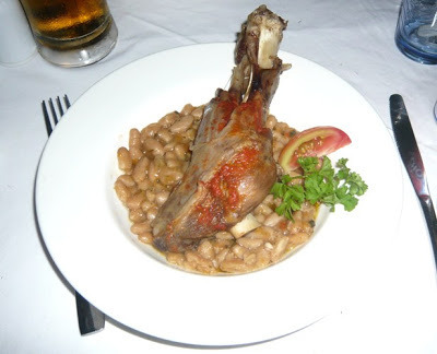 lamb shank nestled on creamy flageolet beans, steeped in garlic. It came with a