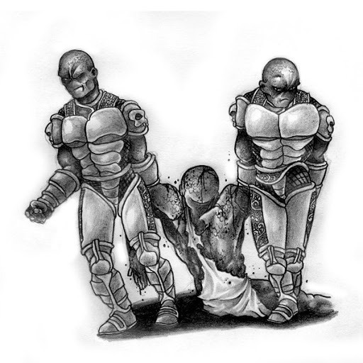 His ears smashed and barely of use, the broken lump of flesh that once answered to the name Krystoph was able only to make out half the king's words, and even they seemed distant and jumbled. Despite this fact, his clouded brain managed to put the pieces together well enough to get a general idea of the point the ruler of Ocha was trying to make. Doing his best to ignore the unbelievable amount of pain shooting through every centimeter of his body, Krystoph lifted his weary, half-conscious face with a shaky defiance to the creature he once admired beyond all others.
