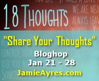 18 Things: (I know, I'm late) Hosted by Jamie Ayres to celebrate the release of 18 Thoughts the third installment in the My So-Called Afterlife trilogy. Each person participating will post a thought (belief) that has defined their life, their way of thinking. Post up to 18 if you’re feeling adventurous and post any time between Jan. 21 and Jan. 28. I’ll pick 2-3 winners each day. My thought is to follow your passion. For me it’s writing. Writing is far more than just a hobby. I go i...