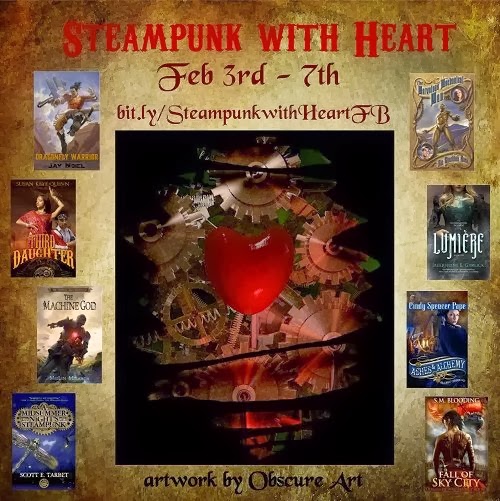 Steampunk With Heart: Author Susan Kaye Quinn formed the Steampunk With Heart Week February 3-7. There will be numerous Steampunk authors, lots of participants, and giveaways. CLICK HERE to sign up. And check out the Facebook Page for this event.