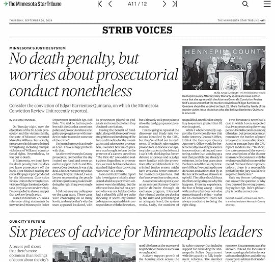In other news, the Minnesota Star Tribune recently published another piece I wrote. In this one, I reacted to a report on a murder case from 2009 that had been prosecuted by my former office.