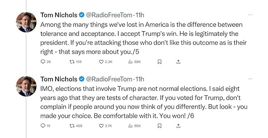 And if you want to fall back on “policies” or the economy or “woke-ism” as the reason why you voted for the candidate whose only plan was Project 2025, Google oligarchies. It’s where we’re headed. JD Vance and Elon Musk are in charge. Hungary and Russia are providing the blueprints.