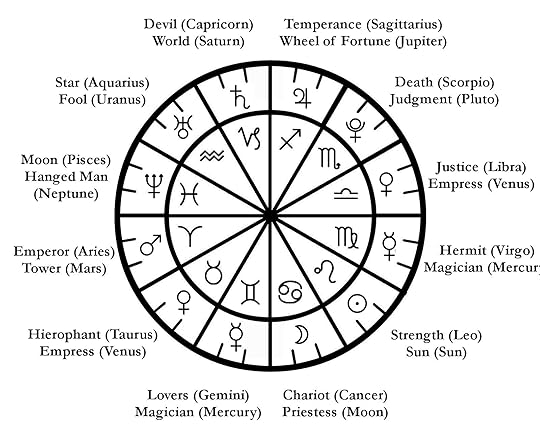 Here's a handy graphic to help you remember the correspondences between the tarot's Major Arcana and the signs and planets of astrology.