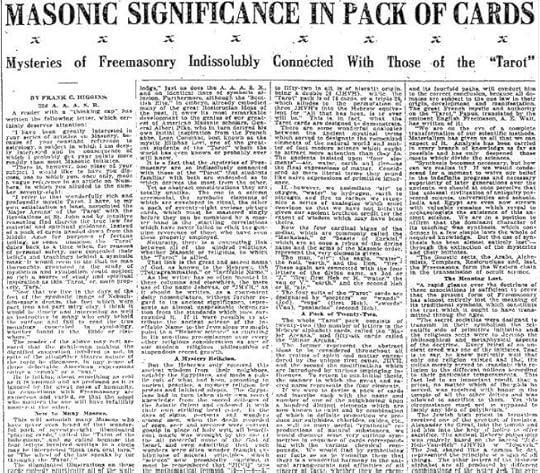 Here’s a fascinating old newspaper article I found online while I was doing some research into tarot history. It’s from the Galveston (Texas) Daily News of December 29, 1919, but it seems to be reprinted from the New York Herald.