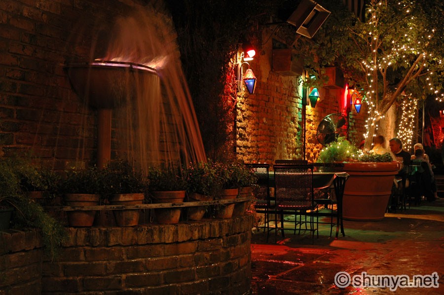 there’s more to Pat O’Brien’s. They provide wonderful entertainment. My favorite part of Pat O’Brien’s is the courtyard. It is brick; it has scattered tables--it takes you off the craziness of Bourbon Street into a little sanctuary of craziness. It has a lovely fountain. If the temperature drops there are heaters. The entrance is actually at 718 St. Peter Street, but you walk down Bourbon and turn the corner and you’re there, but I love the bar so we’re counting it in.