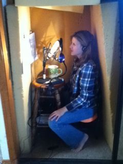 But I did want to share these pics that my daughter took of me recording a new young adult novel called