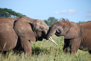 Do I even need to write anything here? Doesn't the title say it all? Well, I can tell you that these elephants weren't fighting, they were playing--so cute! I took their picture in Manyara National Park. I have lots of elephant pictures, but this was one of my favorites.
